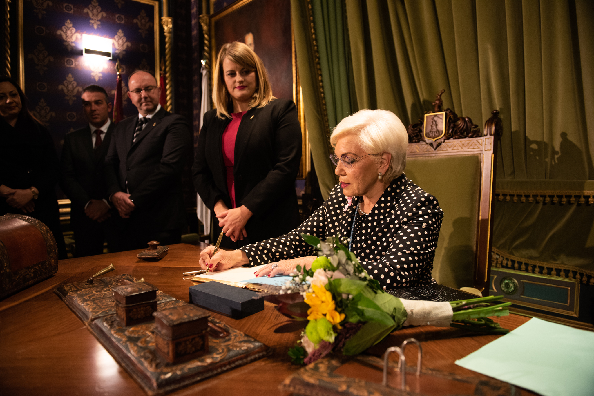 La pregonera dedicó su firma en el Libro de Honor de Casas Consistoriales a su abuelo Sebastián Alonso, teniente alcalde del Ayuntamiento en 1931