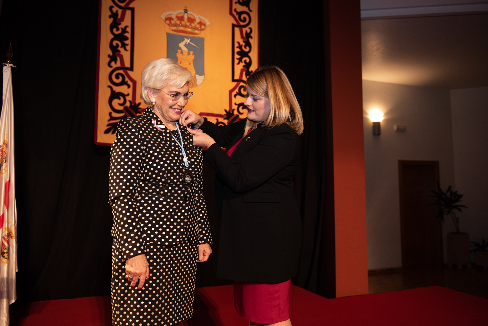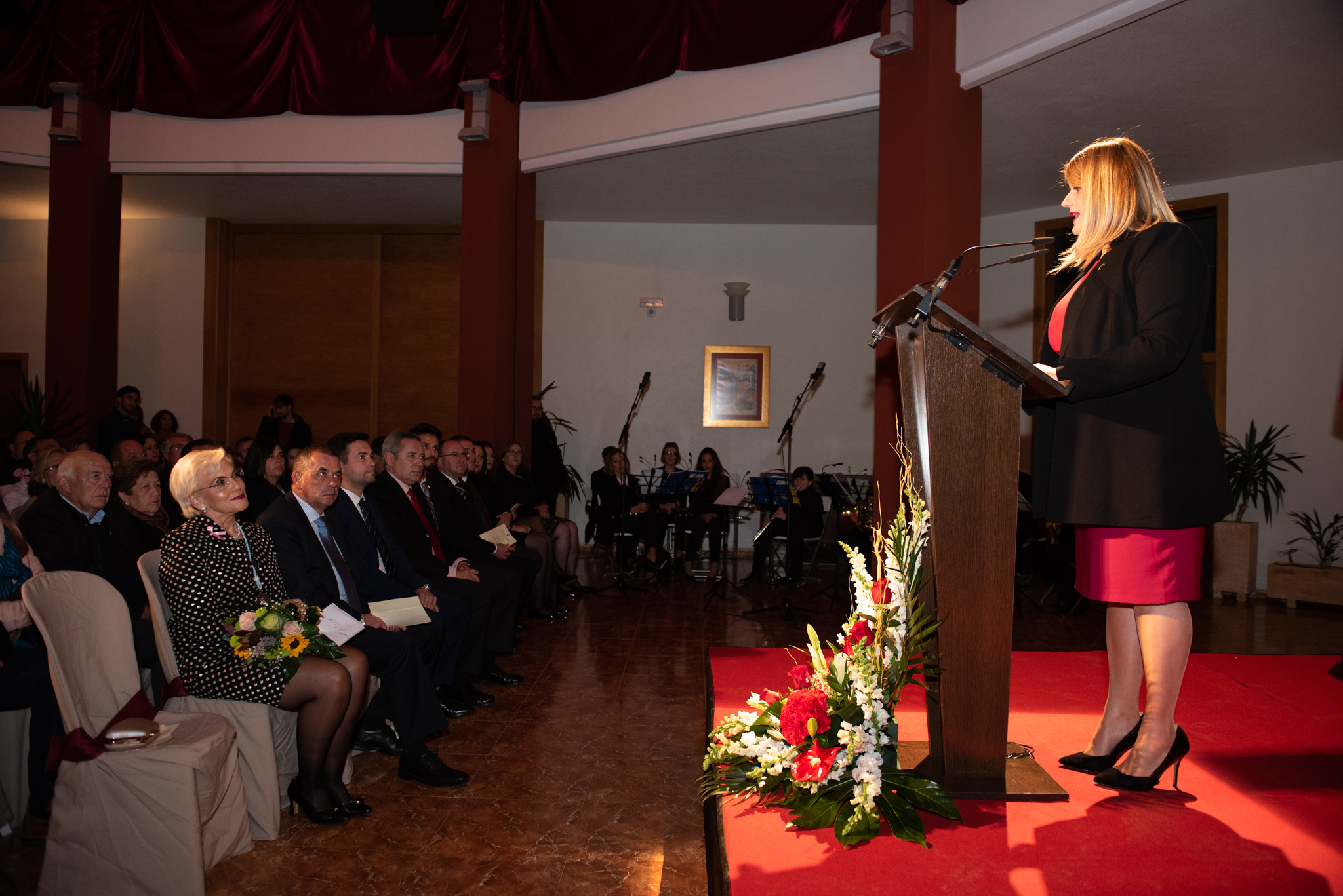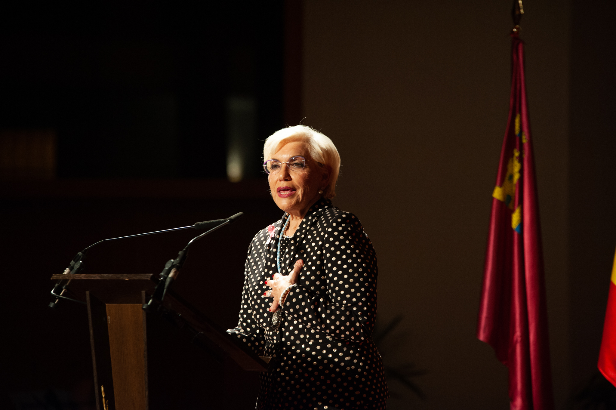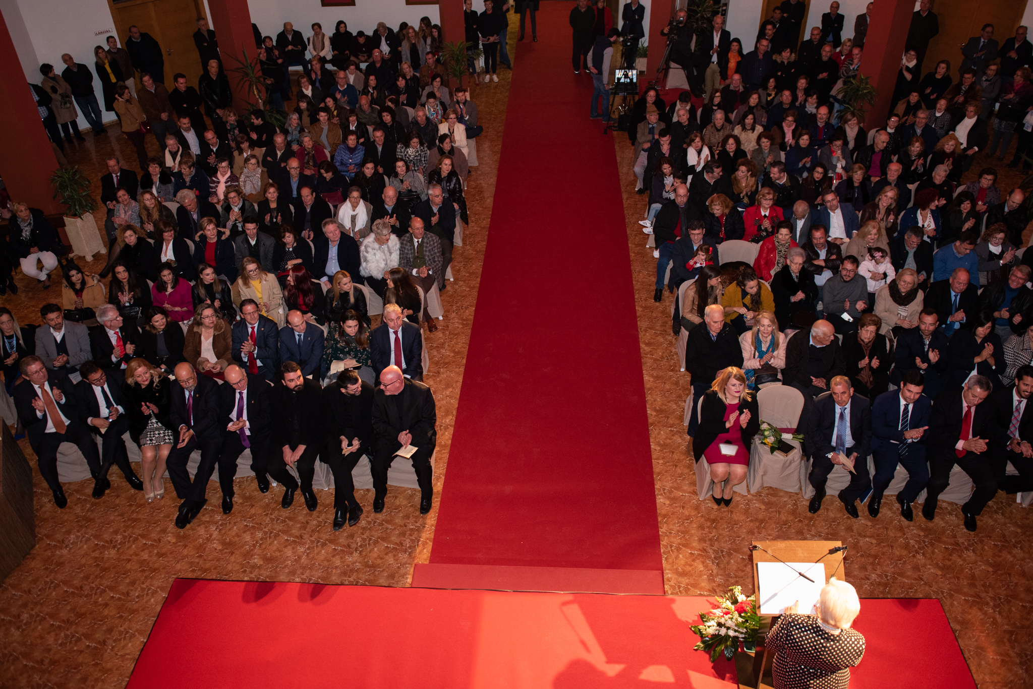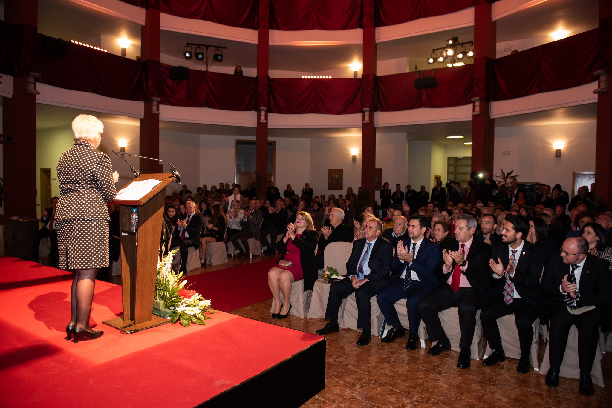Leonor María Alonso García pregonó las Fiestas Patronales de Mazarrón 2018 con una emotiva intervención que centró en la Purísima Concepción. Numeroso público llenó el aforo del Salón de Actos del Centro Parroquial para asistir al acto oficial de apertura de las fiestas de Mazarrón. La pregonera enlazó en sus palabras la historia local y su vinculación desde la infancia a unos festejos que vivió de siempre con devoción y especial sentimiento. Recuerdos familiares, menciones a seres queridos y un amor profundo por Mazarrón se desprendieron de una intervención que arrancó aplausos en tres ocasiones. Leonor María Alonso recibió al término de sus palabras el Escudo de Oro del municipio que le fue colocado por la alcaldesa, Alicia Jiménez.
