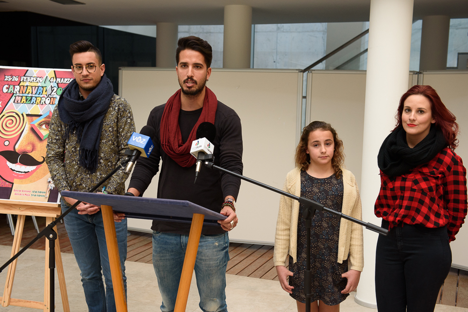 Del 24 de febrero al 4 de marzo Mazarrón disfrutará de su carnaval con la participación de más 40 peñas y 2.000 comparsistas que desfilarán por sus calles en los tres desfiles incluidos en la programación presentada este lunes por el concejal de Festejos, Patricio Sánchez. El edil estuvo acompañado de las musas salientes María Hernández y Nuria Fernández quienes junto al muso Juan Antonio García animaron a los mazarroneros a disfrutar de una fiesta que tendrá, por segundo año consecutivo, su continuidad en la Carpa de Día instalada en la Avenida de la Constitución, durante los días de desfile.