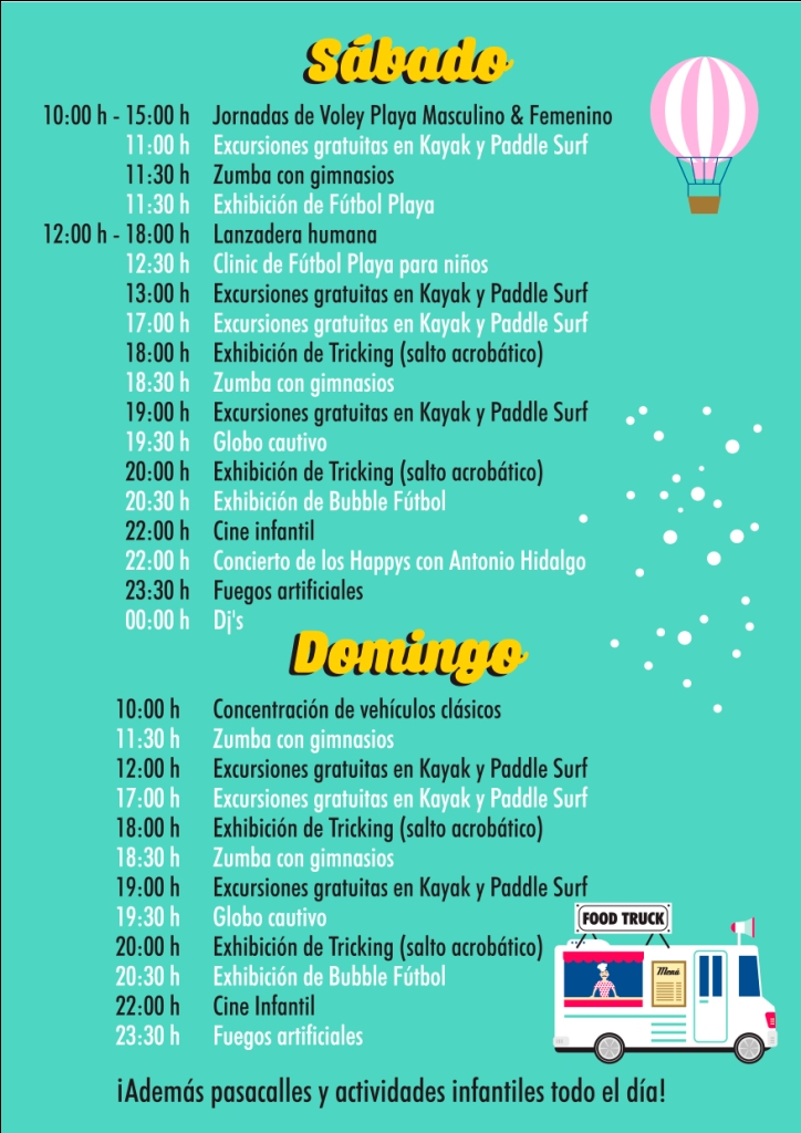 Junto a La Isla y muy cerca de donde se halla sumergido el barco fenicio más antiguo del Mediterráneo se vivirán dos días de espectáculo para todos los públicos. Gastronomía, feria ibicenca, atracciones infantiles, música en directo, globo aerostático, deportes y actividades en la playa harán disfrutar a todos los que deseen pasar un fin de semana diferente donde el buen humor y la diversión están garantizados.
