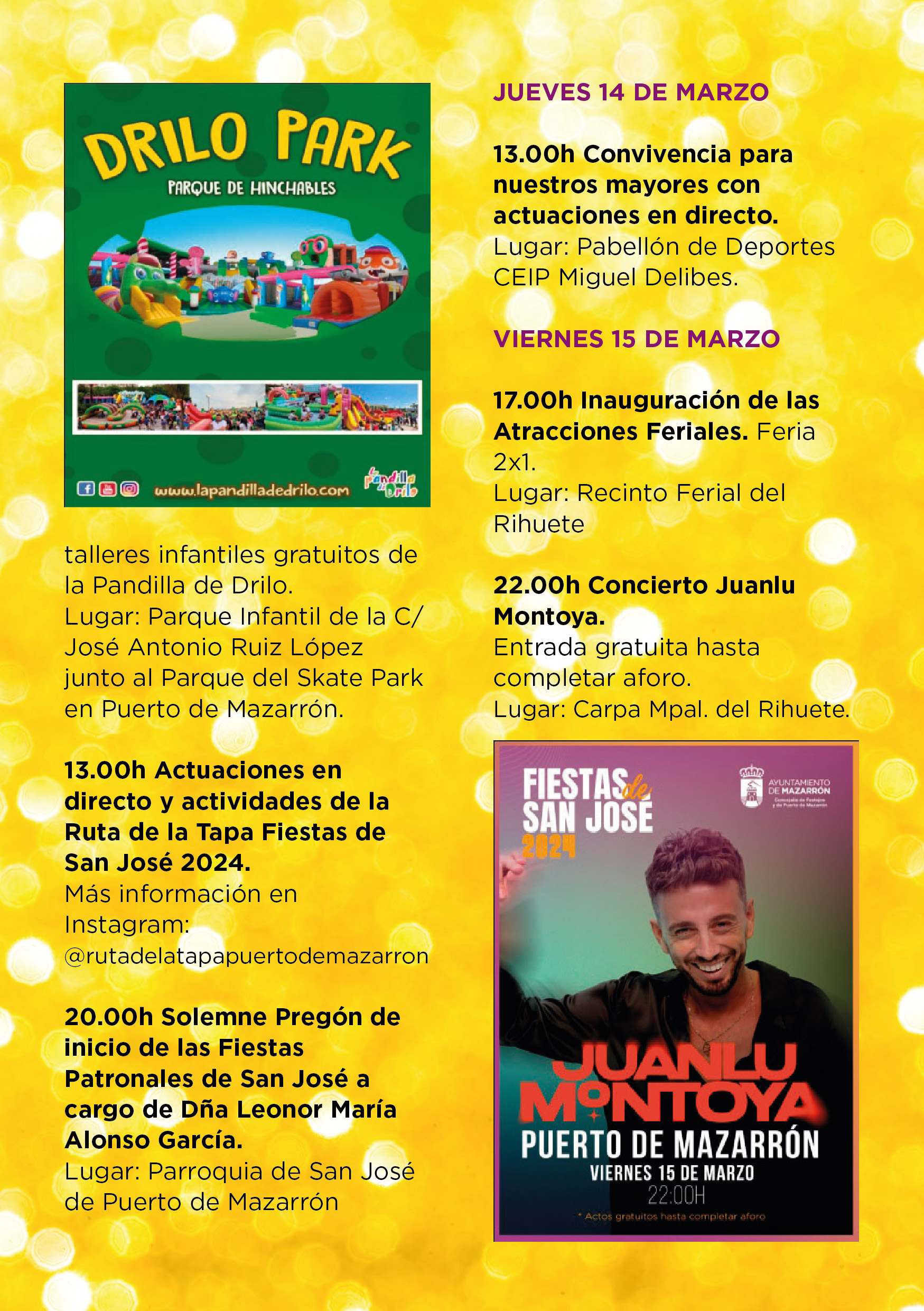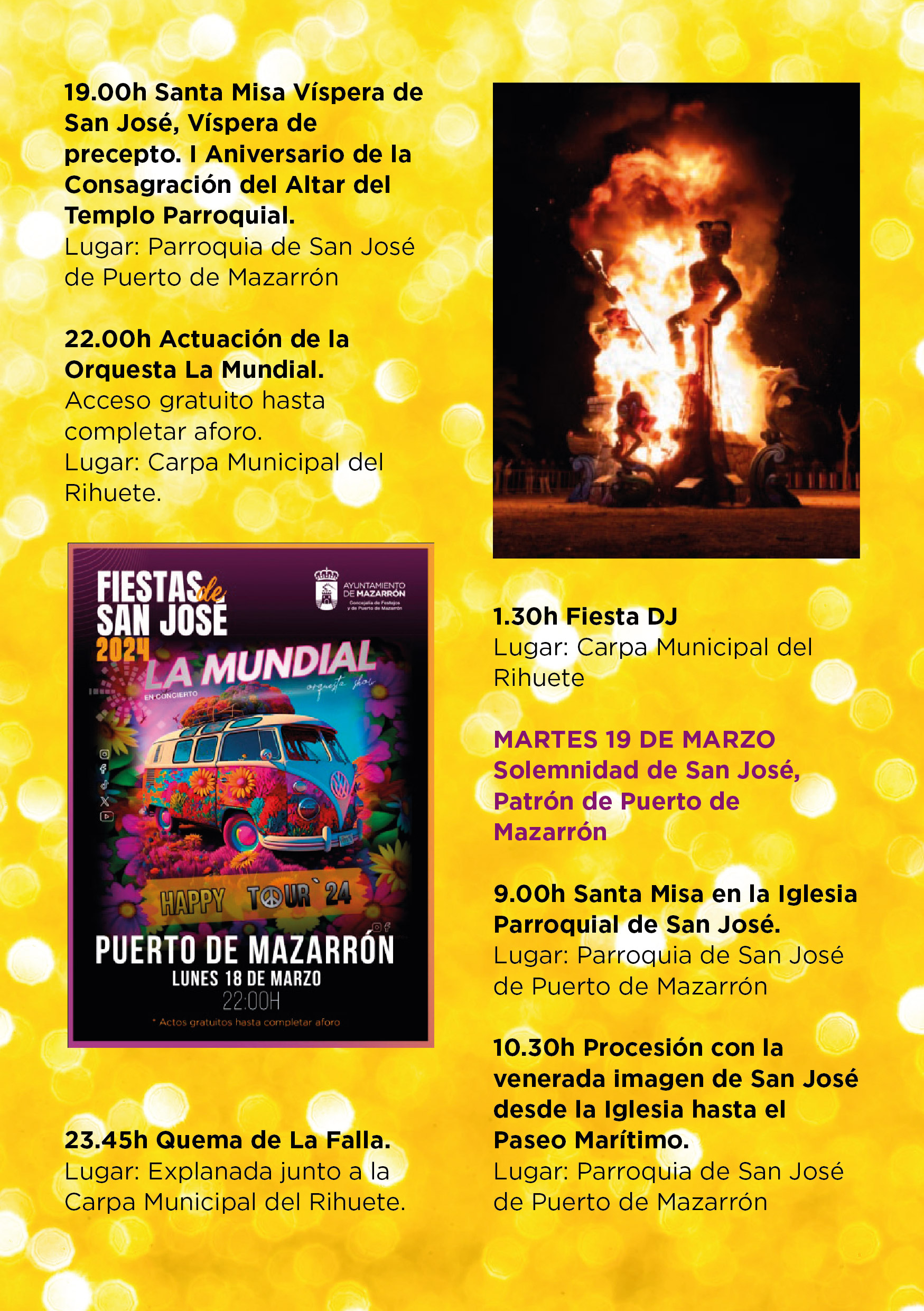 20.00h Solemne Pregón de inicio de las Fiestas Patronales de San José a cargo de Dña Leonor María Alonso García.