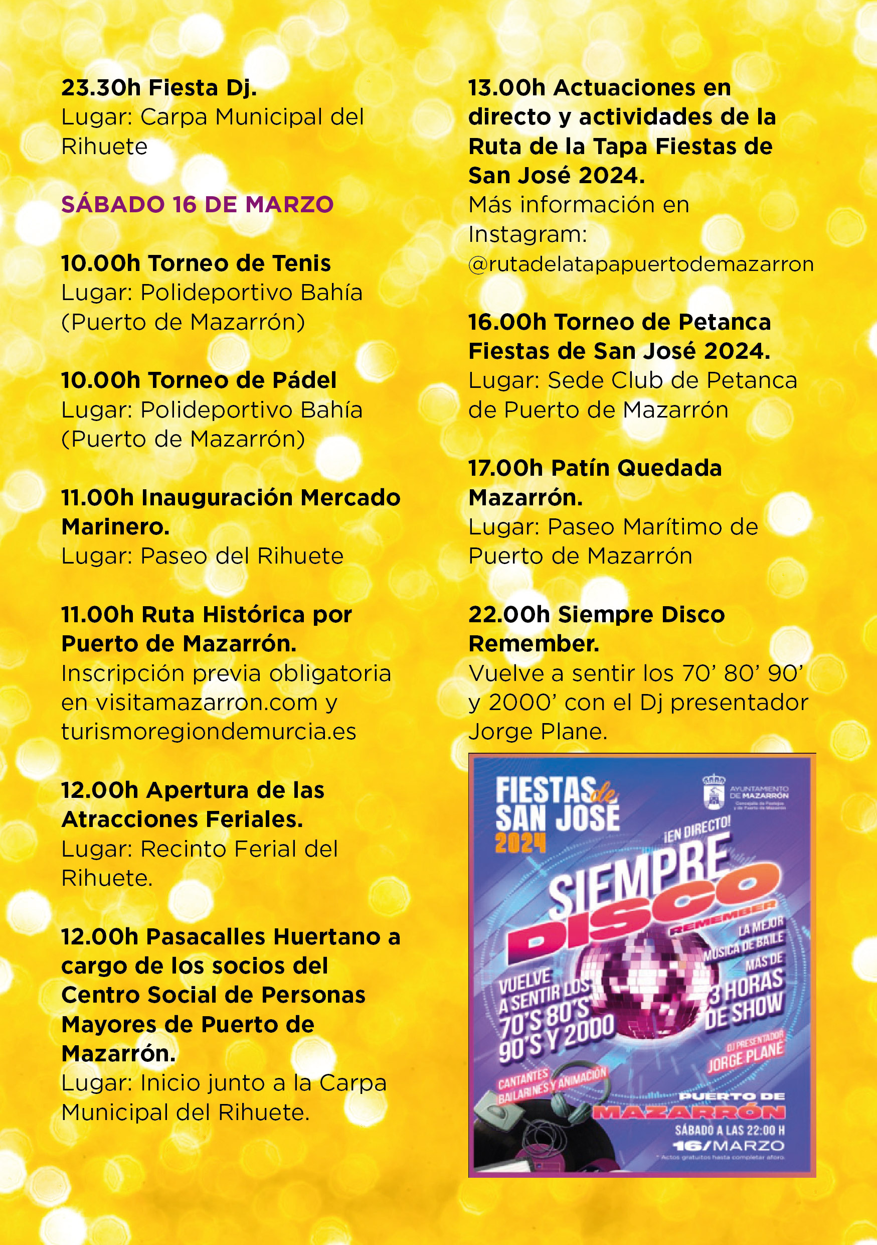 Horario: desde la apertura de los establecimientos hasta el cierre de los mismos. Los pasaportes deberán entregarse en la Oficina de Turismo hasta el domingo 24 de marzo. El listado de premiados se hará público los días posteriores en las redes sociales del Ayuntamiento de Mazarrón y en www.mazarron.es,