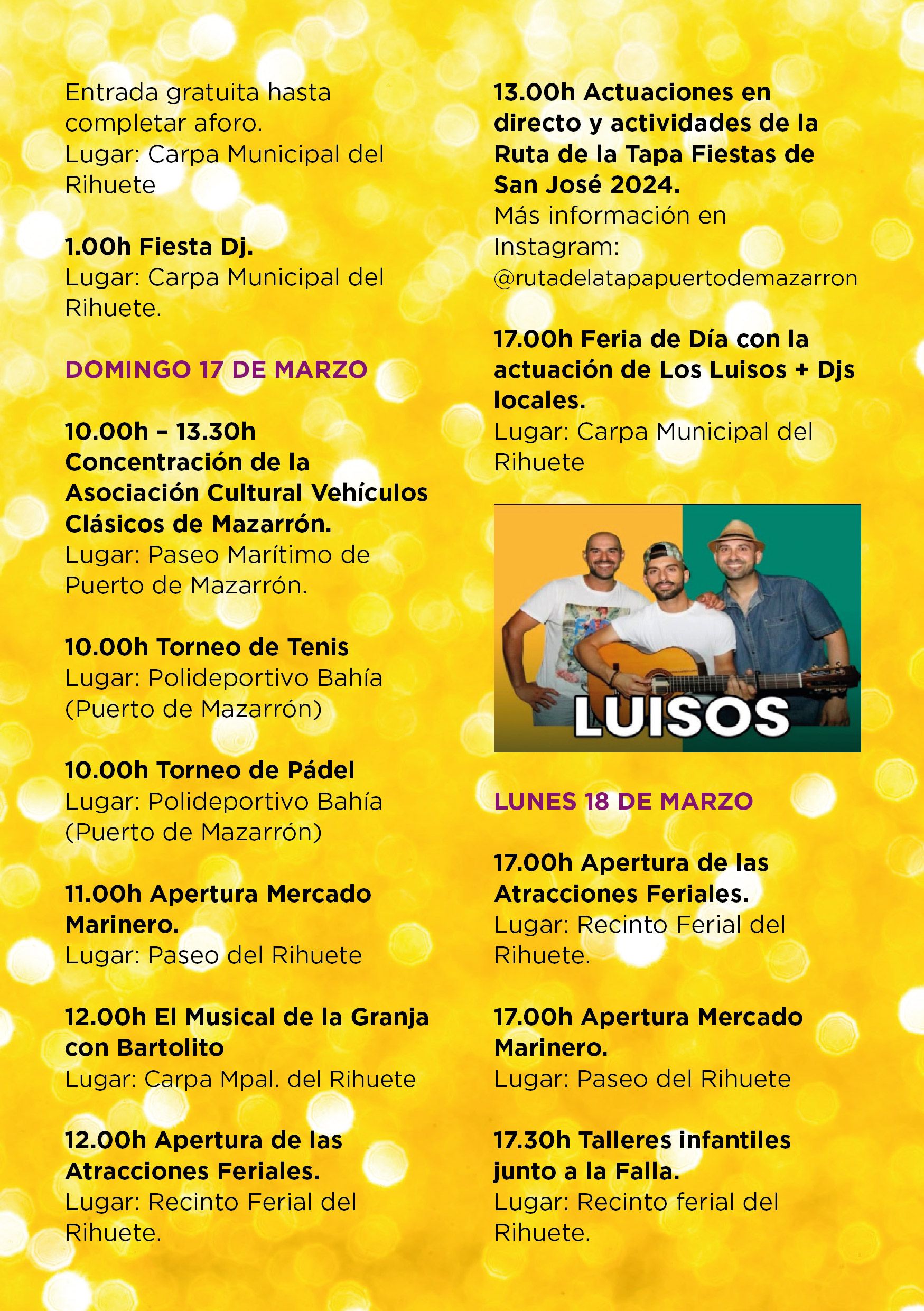 17.00h Feria de Día con la actuación de Los Luisos + Djs locales.