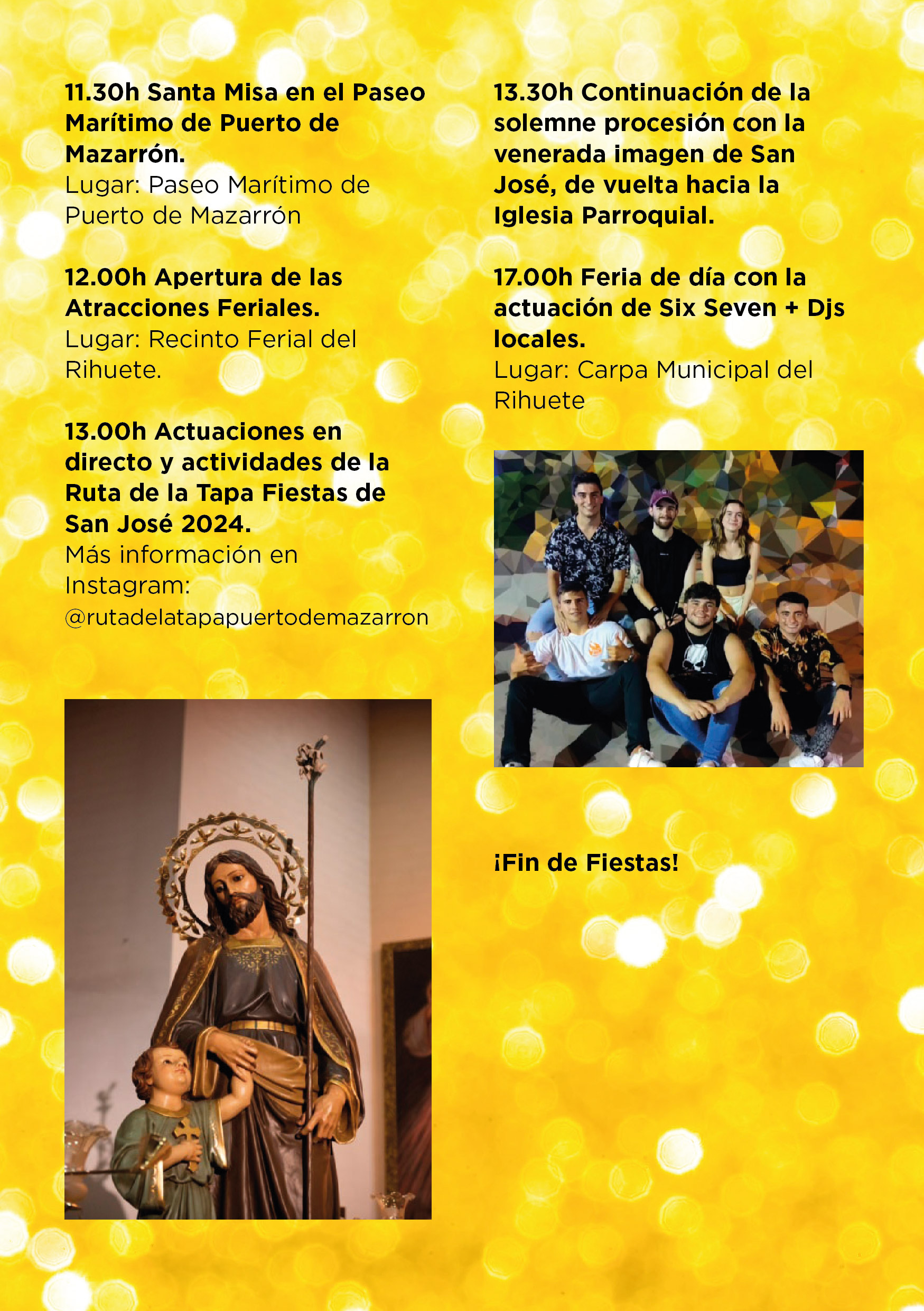10.30h Procesión con la venerada imagen de San José desde la Iglesia hasta el Paseo Marítimo.