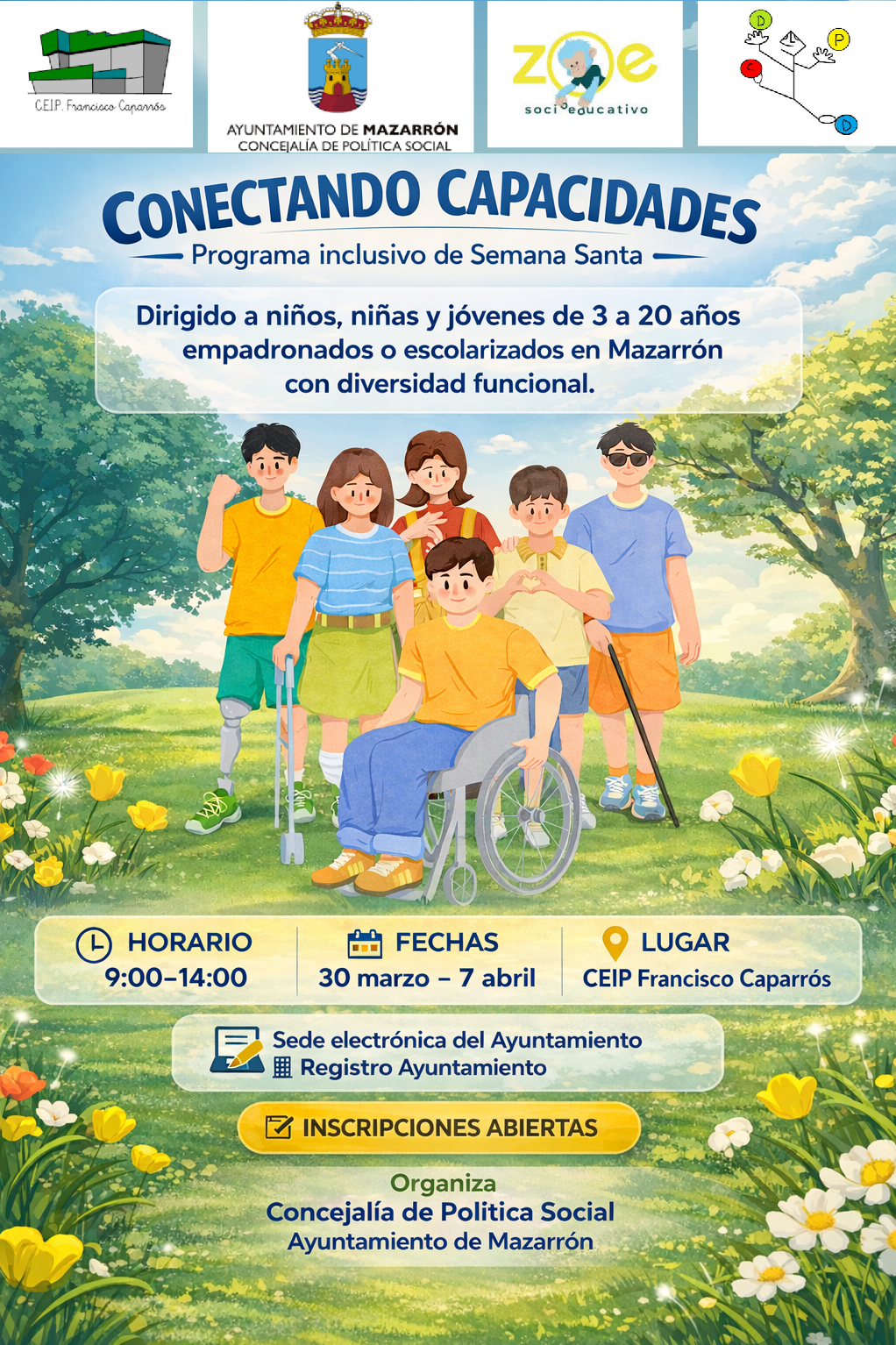 “Conectando Capacidades” se llevará a cabo del 30 de marzo al 7 de abril de 2026, en horario de 9:00 a 14:00 horas, consolidándose como una propuesta que refuerza el compromiso del Ayuntamiento de Mazarrón con la inclusión, la igualdad de oportunidades y el bienestar de las familias del municipio.