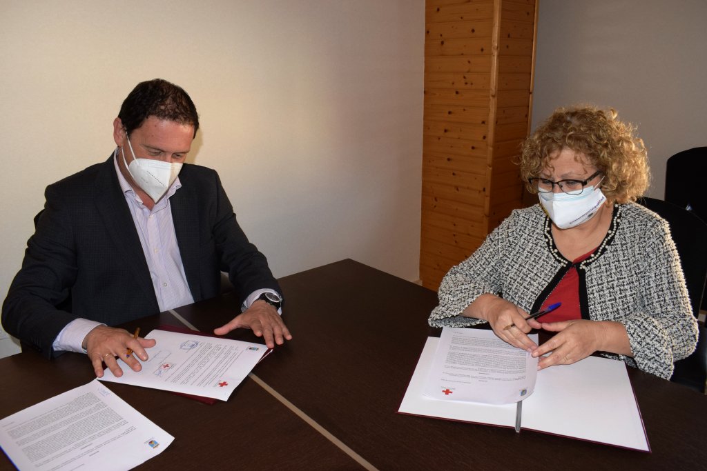 El alcalde de Mazarrón, Gaspar Miras, y la presidenta de la Asamblea de Cruz Roja Mazarrón, Carmen Navarro, han firmado esta mañana el convenio por el cual la organización podrá seguir prestando el próximo año el servicio de transporte sanitario en el municipio, tal y como venía ocurriendo. Un convenio en el que el Ayuntamiento aporta 152.000 mil euros, a pesar de que se trate de competencias que no son propias del consistorio.