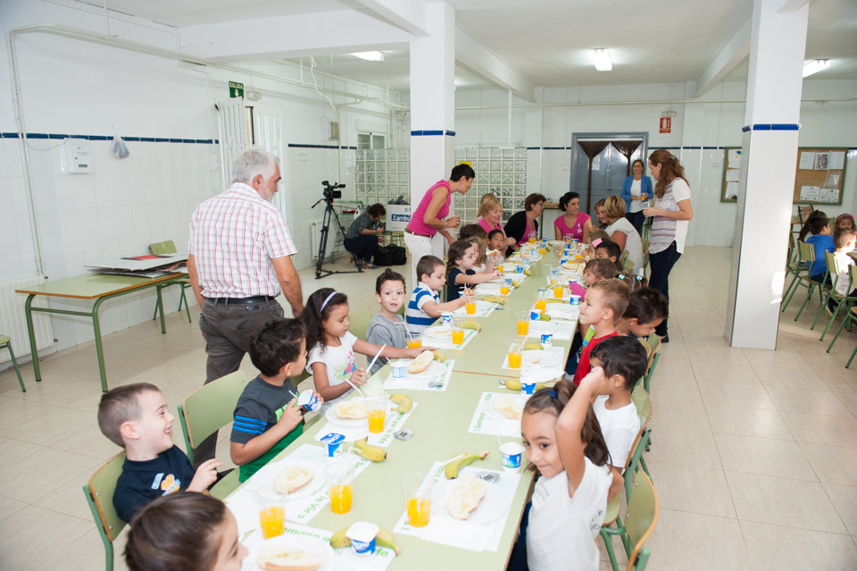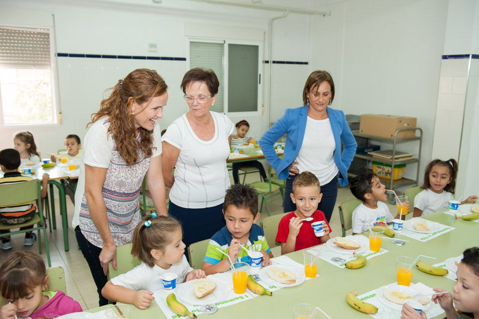 Acompañados de sus profesoras y bajo la atenta mirada de la directora del centro, Maite Donato, los niños han tomado un desayuno basado en la dieta mediterránea compuesto por un zumo de naranja, pan con aceite, fruta y un yogur. La concejal de Sanidad y Política Social, Laura Ortiz, destacaba la importancia de inculcar desde edades tempranas la adquisición de hábitos alimenticios saludables. Tras el desayuno ha tenido lugar una charla informativa a cargo del técnico municipal, José Manuel Fernández. Voluntarias de la AECC participan activamente en la organización de unos desayunos saludables que se realizarán en los diez colegios del municipio, según ha indicado Luisa Heredia, presidenta de la Junta Local.