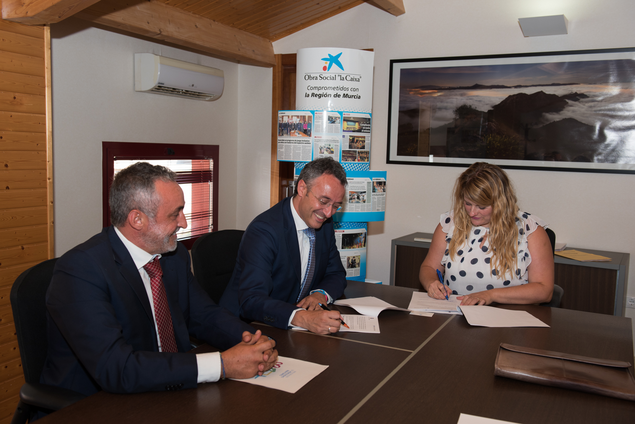 La alcaldesa de Mazarrón, Alicia Jiménez y el director de Área de negocio de la Fundación CaixaBank, Diego García-Esteller, han firmado un convenio de colaboración para impulsar el programa de Personas Mayores y potenciar la labor de promoción del envejecimiento activo de los mayores de Mazarrón que se suman a las cerca de 21.000 personas que participan cada año en España en más de 330 actividades.