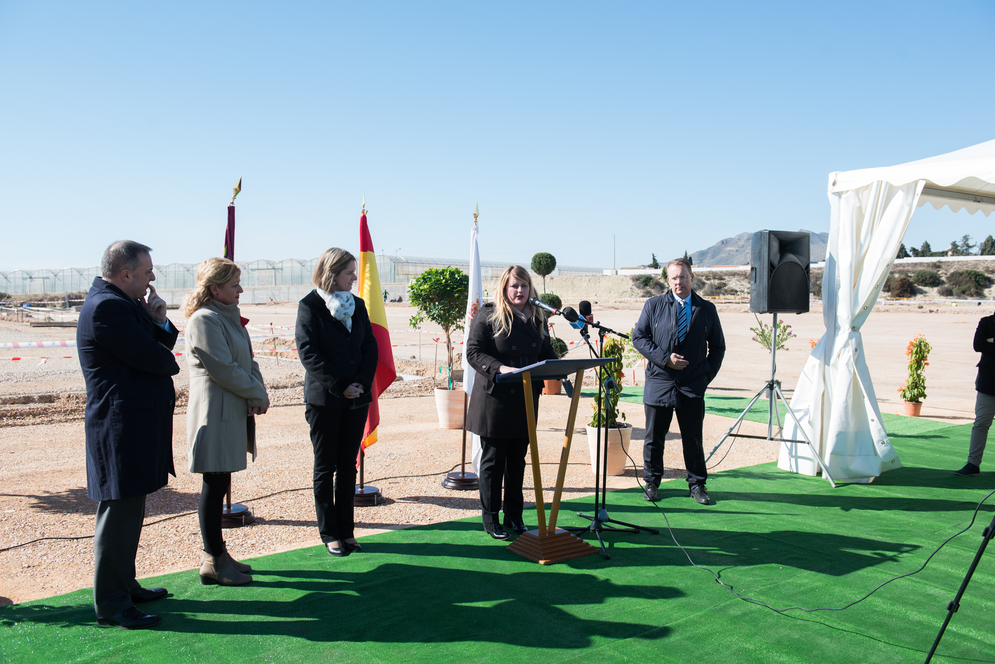 La alcaldesa de Mazarrón, Alicia Jiménez, ha visitado este miércoles la marcha  de las obras del Parque Comercial del Polígono Industrial “La Charca” de Puerto de Mazarrón que lleva a cabo la empresa Euro-Activ Promociones. Durante la visita ha sido acompañada por la concejal de Comercio, Marisol Vivancos, el director general de Comercio, Francisco Abril y la secretaria general de Empleo de la Comunidad Autónoma, María Casajús. La alcaldesa ha destacado la importancia que tiene para el municipio esta inversión privada, que se une a otra actuación reciente que supuso la apertura del Hotel Alegría Dos Playas, y que puso sus ojos en Mazarrón “atraída por las bonificaciones fiscales aprobadas por el Ayuntamiento y las medidas de simplificación administrativa que ha impulsado el Gobierno Regional”.