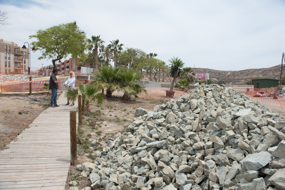 La edil, Marisol Vivancos, visitaba esta semana las obras que se han complementado con el ajardinado de las zonas de acceso empleando piedra basáltica y especies de flora desértica como palmáceas y plantas crasas. Además se ha mejorado la rampa de paso para personas con movilidad reducida.
