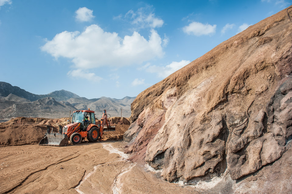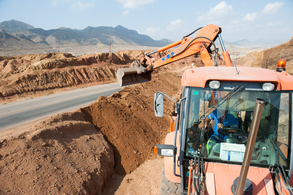Otra de los puntos donde estos días trabajan los operarios municipales es en los terrenos anexos a la RM-D4. “Hace unos ocho años ideamos un sistema de canalización para que el agua que baja de las minas no inundara la carretera y se optó por hacer unos caballones de tierra para redirigir el agua hasta un alcantarillado situado a unos 200 metros”, recuerda Blas Rojo el sistema empleado para evitar así el corte de la carretera por inundaciones. Estos días una retroexcavadora repone tierra en los caballones construidos artificialmente.