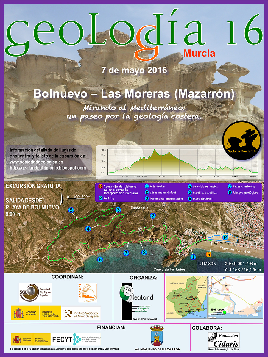 Expertos geólogos harán de guías en una ruta gratuita por las calas de Bolnuevo que comenzará a las 9 de la mañana. Talleres didácticos y rastreo de fósiles buscarán la participación de las familias