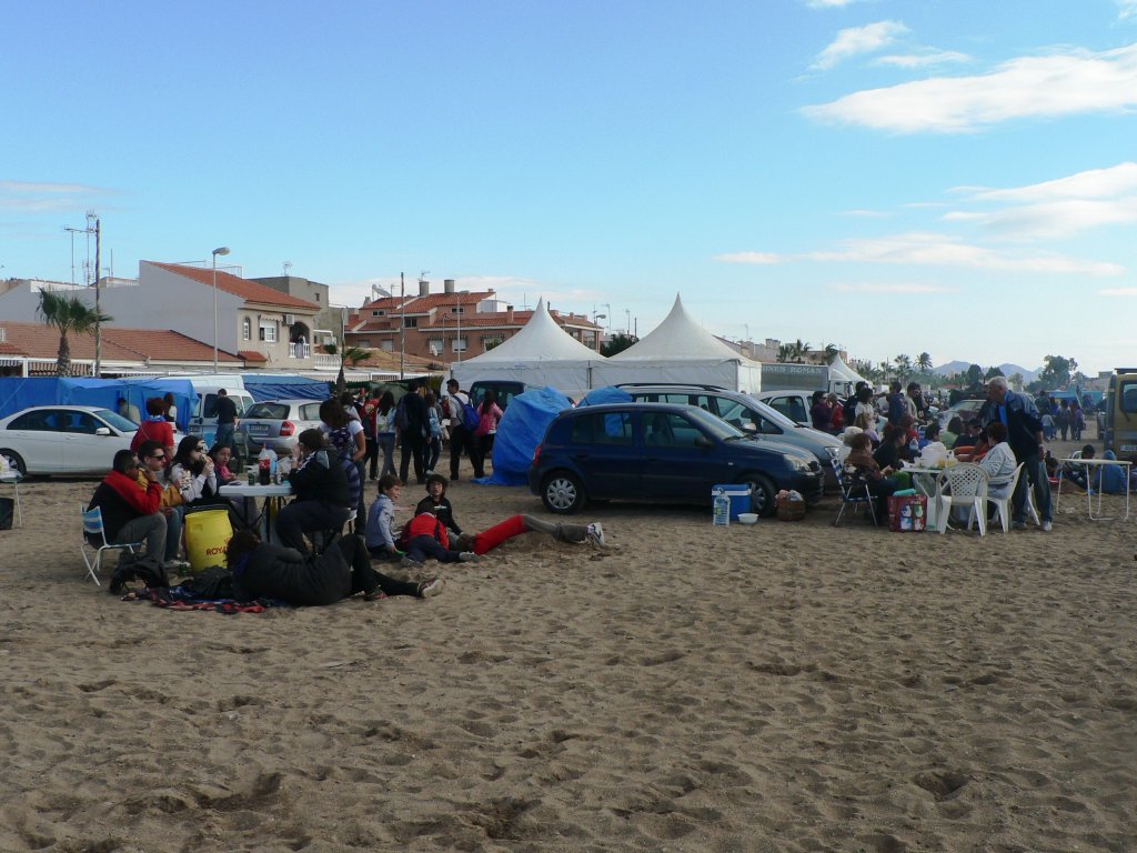 La celebración religiosa dejó paso a la fiesta popular en la que tuvo un especial protagonismo la moraga de sardinas, acompañadas de tomate mazarronero, que se repartió entre los asistentes. Otros prefirieron degustar diferentes platos típicos de la gastronomía de la zona entre los que no faltaron las paellas, las migas, las pelotas con caldo, los boquerones en escabeche, el bonito y los salazones de la Bahía, regados con litros de cerveza y vino. Asimismo, en las carpas instaladas en la playa los romeros disfrutaron de un amplio abanico de postres como bizcocho, pan de calatrava o tarta de manzana, entre otros.