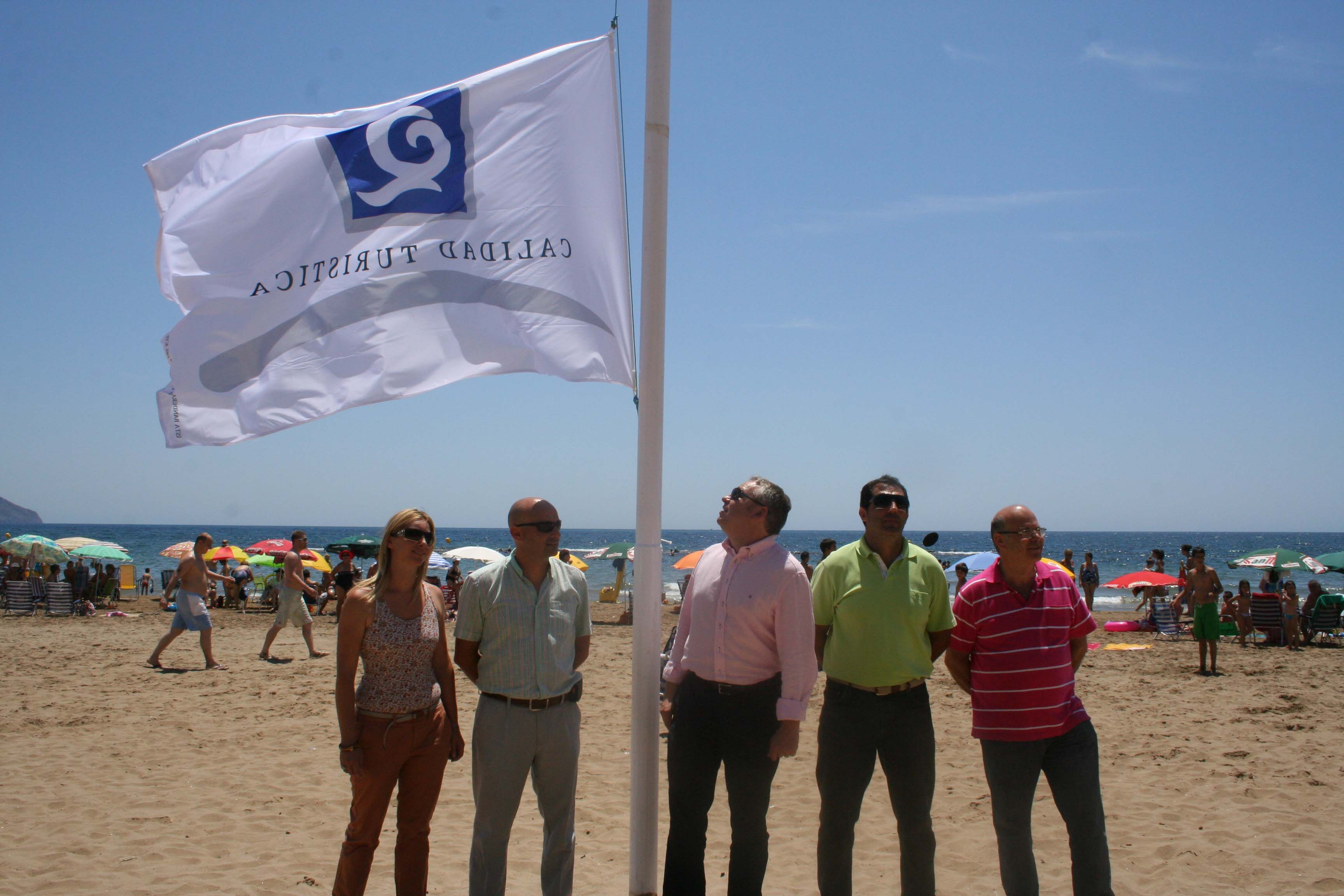 4 playas del municipio de Mazarrón exhiben desde hoy las banderas que las distinguen por su excelencia turística. Dos de ellas, la del Rihuete y la del Castellar, han sido galardonadas con el distintivo “Q” de Calidad Turística y otras dos, Nares y La Reya, han conseguido bandera azul. El acto principal de izada de las banderas ha tenido lugar en la playa del Rihuete, que ha recuperado la denominada “Q” de Calidad que otorga el Instituto para la Calidad Turística Española tras quedar suspendida el pasado año por las obras del paseo.