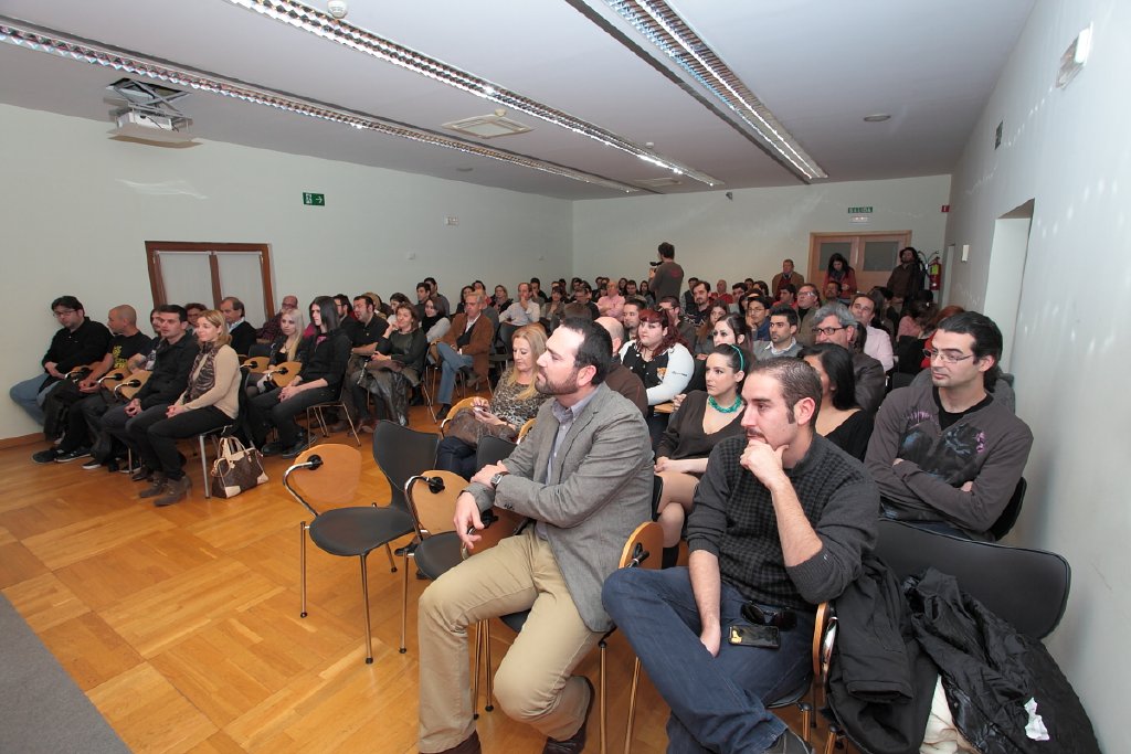 La charla fue presentada por Ginés Campillo, Alcalde de Mazarrón y Pablo Blesa, Decano de la Facultad de Comunicación de la UCAM