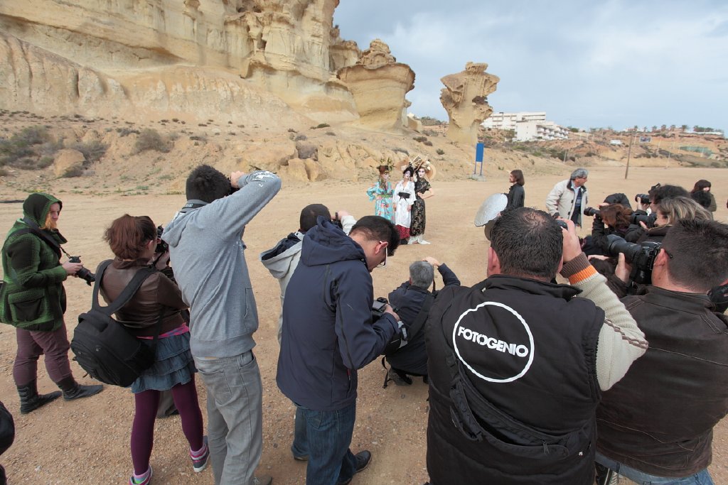 Durante todo el puente de San José Rebeca está impartiendo un largo taller de 4 días a los alumnos matriculados en el Titulo de Experto Universitario en Fotografía, organizado por Fotogenio y la UCAM. Durante el domingo y el lunes se están realizando diferentes sesiones fotográficas por distintos enclaves del municipio, minas, Erosiones de Bolnuevo, Calas de Bolnuevo. En todo ello participa un nutrido grupo de producción con seis modelos profesionales, varias maquilladoras, estilistas, asistentes, y los propios alumnos. Lo cual despertó la curiosidad de numerosos curiosos que se encontraron con semejante despliegue.