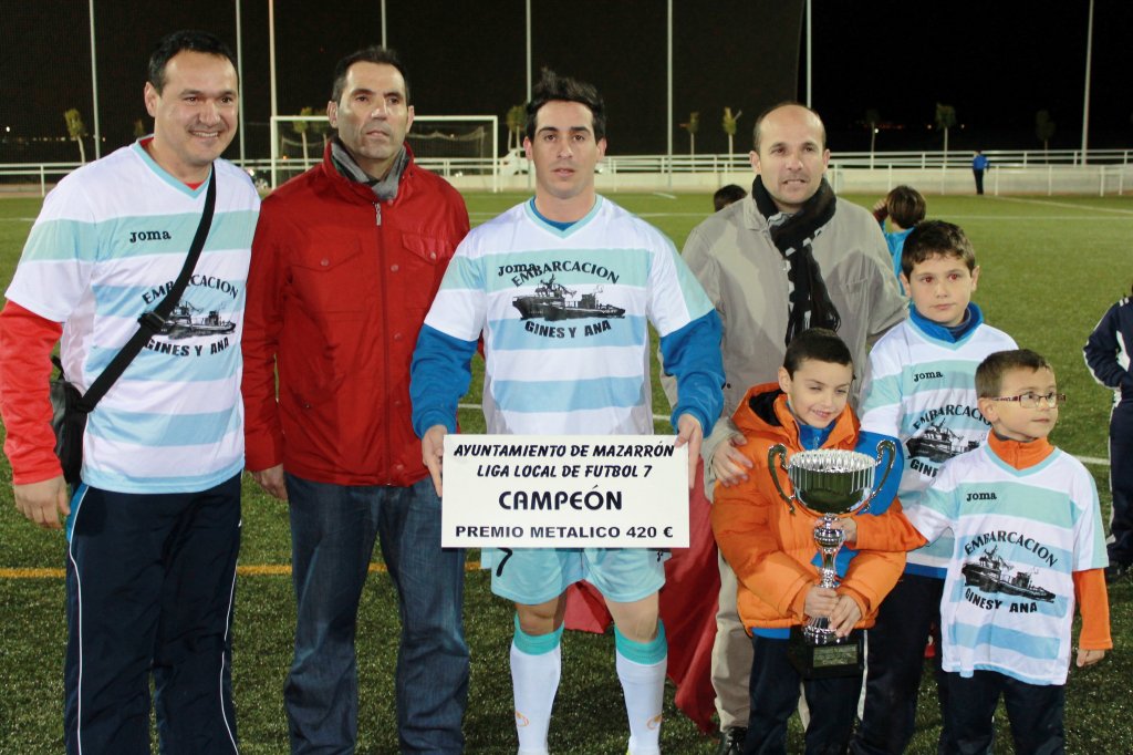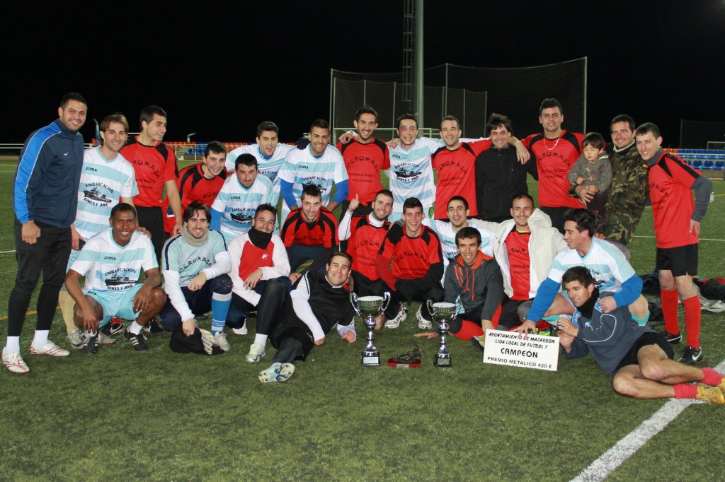 El pasado viernes el complejo deportivo de la Media Legua acogió la final de la Liga Local de Fútbol 7 que, por primera vez, se ha organizado desde la concejalía de Deportes del Ayuntamiento de Mazarrón. El encuentro, en el que estuvieron presentes los concejales Andrés Valera e Isidro Coy, enfrentó a los ganadores de las semifinales que se disputaron el miércoles y que resultaron toda una sorpresa, ya que en ambas contiendas se impusieron los equipos que, a priori, no eran los favoritos.