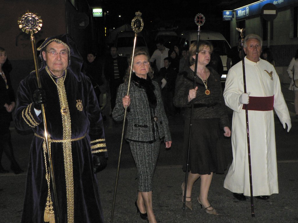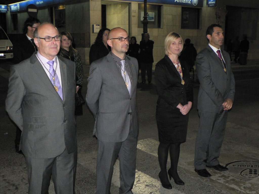Tras el Calvario, y precedido por un tercio romano, desfilaba el Cristo de la Soledad. Sus cofrades, que pertenecen a la cofradía del mismo nombre, lucían capuz y fajín negro, túnica blanca y capa gris perla. Recostado y rodeado de velas desfilaba el Crucificado sobre un trono exquisitamente adornado de alelíes morados y esterlicias. Cerraba esta procesión del Prendimiento el paso de la Virgen de la Amargura, perteneciente a la cofradía de San Juan, y cuyos componentes desfilan totalmente de azul marino pero con túnica blanca. En la presidencia se encontraban la concejal de Cultura, Turismo y Educación, Maria Celeste Soria, y los ediles de Festejos, Comercio y Consumo, Isidro Coy, de Gestión de Servicios Públicos Urbanos, Juan Miguel Muñoz, y de Seguridad Ciudadana y Protección Civil, Miguel Mª García.