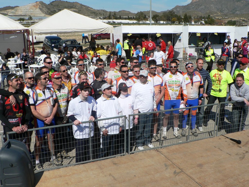 La IV Marcha Mountain Bike “Costas de Mazarrón” se ha celebrado hoy con gran éxito y con una afluencia de participantes que, entre ciclistas y familiares, ha superado las 2.000 personas. Todos ellos se han dado cita esta mañana en la zona del Recinto Ferial de Mazarrón donde ha comenzado la prueba de 55 kilómetros que ha recorrido gran parte del municipio pasando por las calas de Bolnuevo, la Sierra de las Herrerías y el Alto de Los Cartuchos. El campeón de la clasificación general ha sido Fabián Molina Delgado, seguido de Salvador Ayala López y José Luis Parra Carrasco en segundo y tercer lugar respectivamente. Los 3 han recibido un jamón como premio especial de manos del Alcalde de Mazarrón, Ginés Campillo.