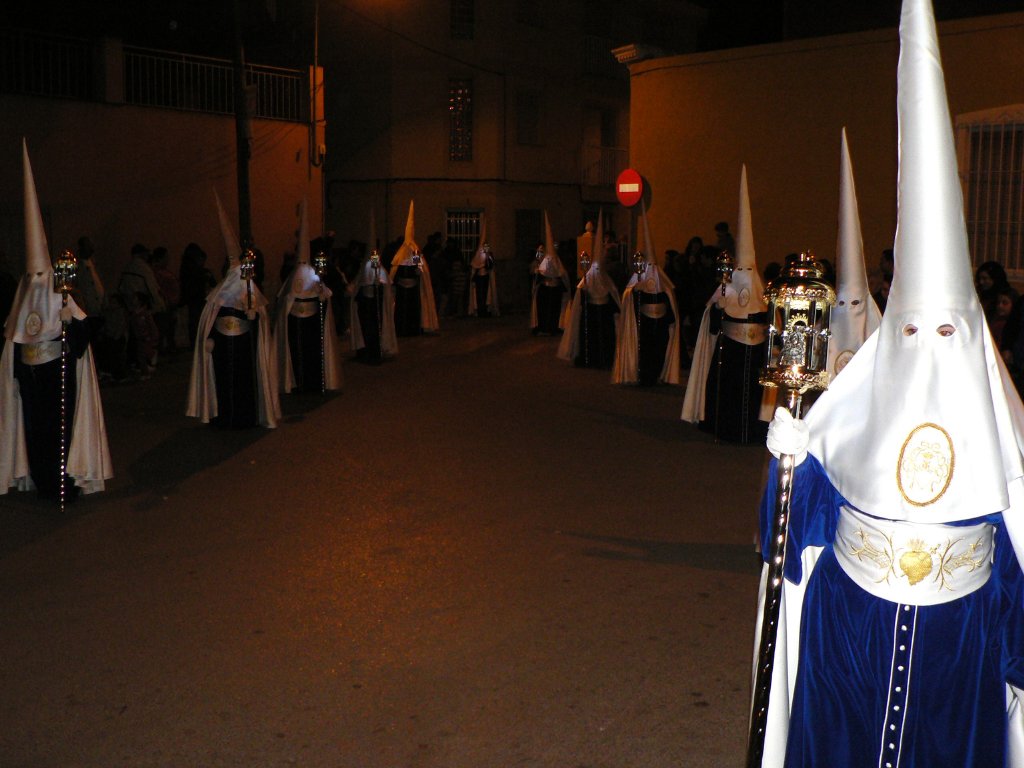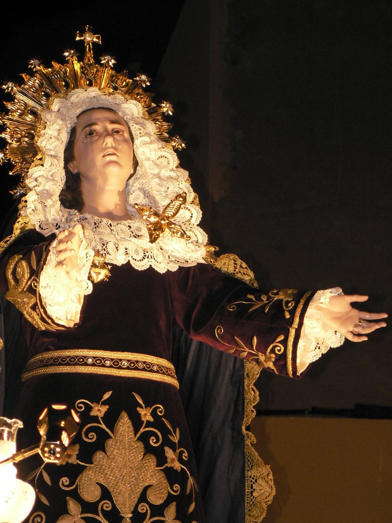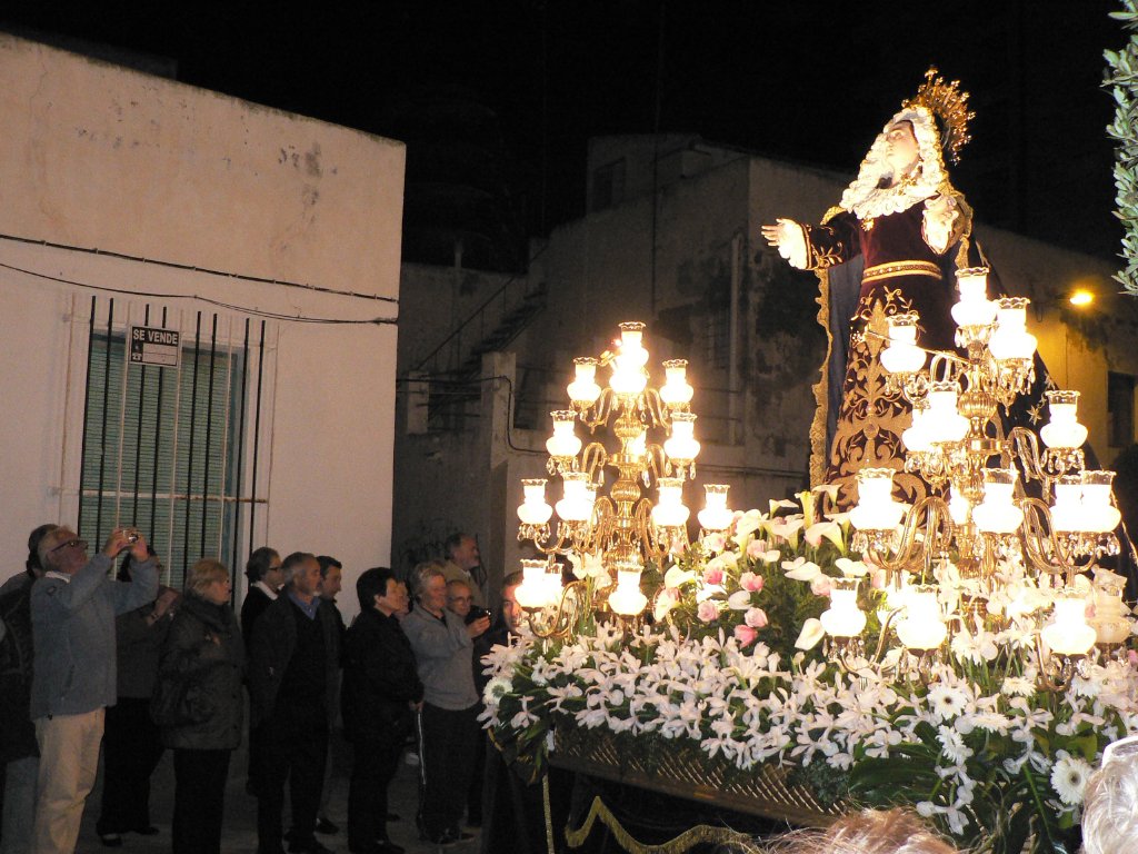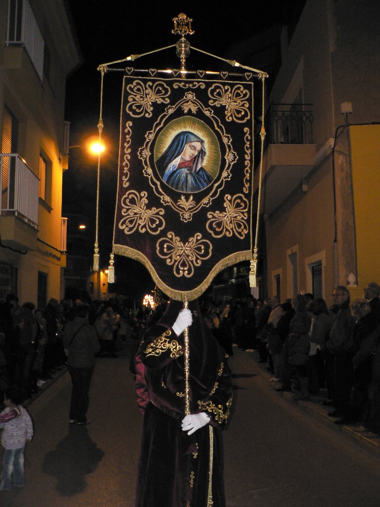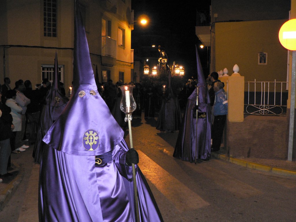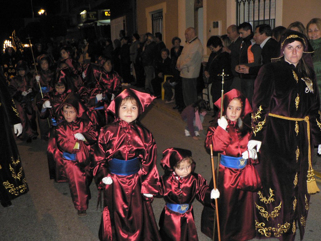 Esta noche tendrá lugar en Puerto de Mazarrón la procesión del Santo Entierro con salida a las 9 y media de la noche desde la parroquia de San José. Cinco pasos componen este desfile. Éstos son San Pedro, San Juan, el Cristo del Perdón con la Virgen de la Soledad, el Santo Sepulcro y la Virgen de Las Penas. Hay que destacar que la Virgen de los Dolores del Jueves Santo, bellísima talla del imaginero Sánchez Lozano, hace las veces de Virgen de la Soledad en la noche del Viernes Santo acompañado con su mirada a uno de los titulares de la cofradía más antigua de Puerto de Mazarrón.