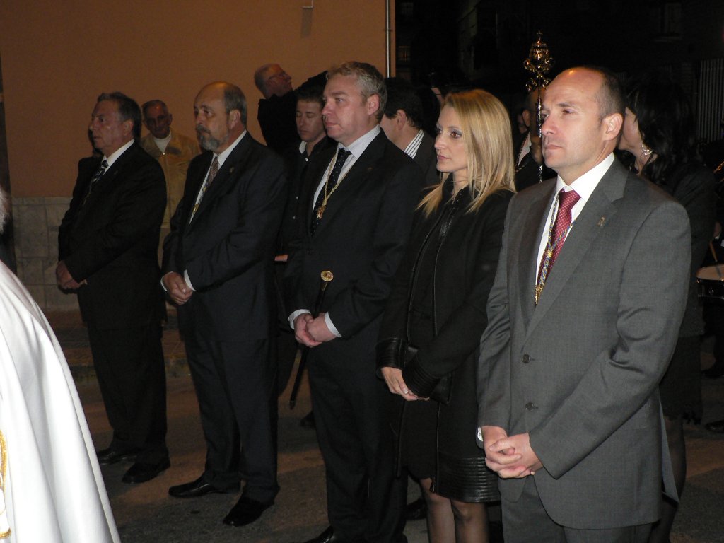 La cofradía del Cristo del Perdón y la Virgen de los Dolores cerraba la procesión con dos pasos. En primer lugar desfilaba la imagen que da nombre a la procesión. Vestidos totalmente de morado iban los penitentes que acompañaban a Nuestro Padre Jesús Nazareno que iba seguido de la Virgen de Los Dolores, cuyos cofrades desfilaban con capuz, capa y fajín azul mientras que la túnica era encarnada. En el cortejo hay que destacar la presencia de un nutrido grupo de manolas que desfilaban delante de La Virgen de Las Penas. En la presidencia desfilaban el párroco de San José, Justo José Sánchez, el Alcalde de Mazarrón, Ginés Campillo, el primer teniente de alcalde, Francisco García, y los concejales Magdalena Méndez, María Martínez, José Gómez, Carlos García y Andrés Valera.