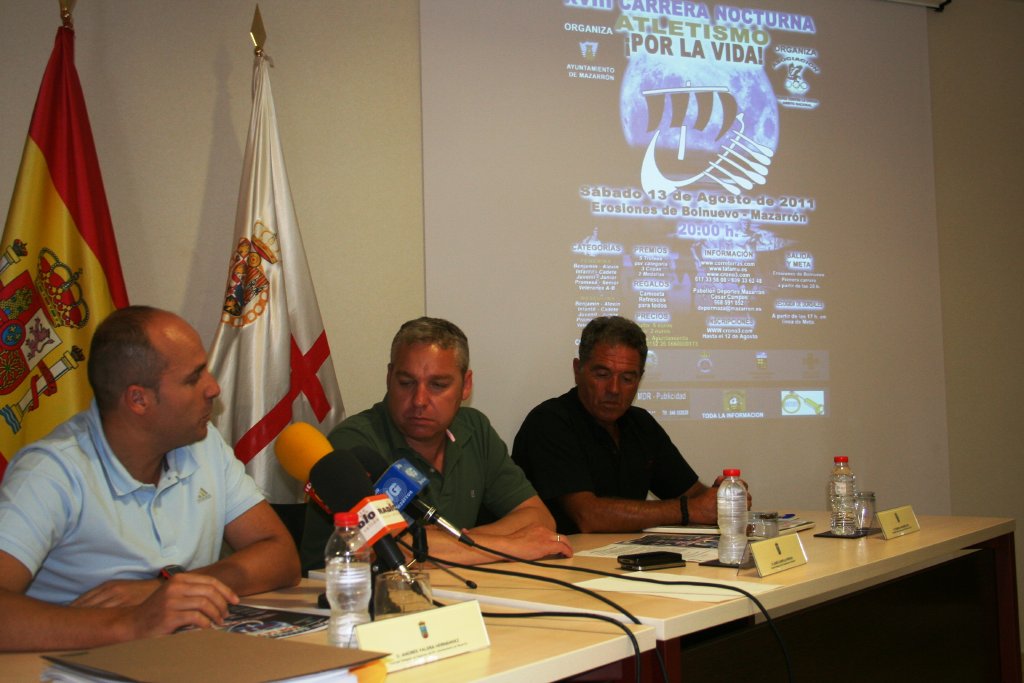 Bolnuevo volverá a acoger el próximo 13 de agosto la Carrera Internacional Nocturna “Por la Vida” que llega a su décimo octava edición en “un gran estado de forma”, tal y como afirmaron el Alcalde del municipio, Ginés Campillo, y el organizador de la prueba, Casiano Navarro, quienes el viernes presentaron esta cita deportiva acompañados del concejal de Deportes y Juventud, Andrés Valera.