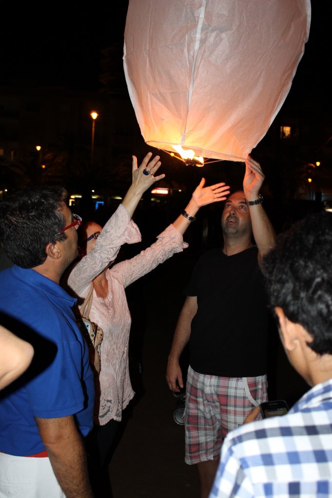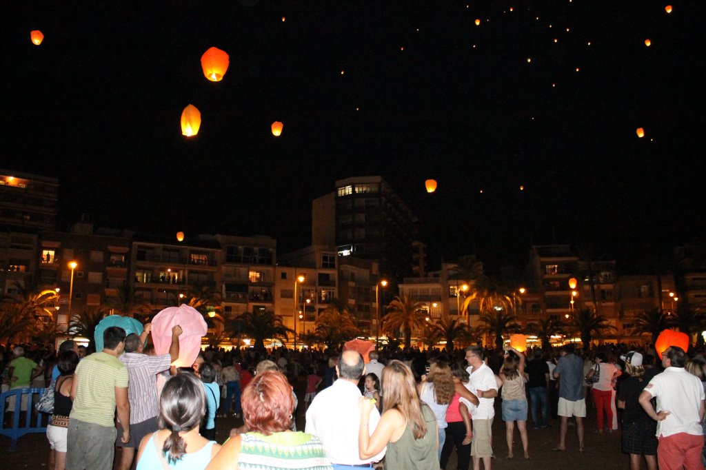 Centenares de personas se dieron cita el pasado sábado en la playa del Puerto para participar y contemplar la suelta de farolillos a beneficio de 'Cáritas Puerto de Mazarrón' que se convirtió en un bellísimo espectáculo y resultó todo un éxito de participación, ya que la citada ONG vendió los 500 farolillos que la concejalía de Festejos del Ayuntamiento de Mazarrón había puesto a su disposición en esta iniciativa solidaria. Los farolillos, que se vendían a 3 euros la unidad, surcaron los cielos al unísono alentados por los aplausos de los espectadores y participantes, entre los que se encontraban el Alcalde de Mazarrón, Ginés Campillo, y el edil de Festejos, Isidro Coy. La gente, antes de dejarlos volar, pedía un deseo, entre ellos, trabajo para los españoles o que cesen las guerras del mundo, entre otros.