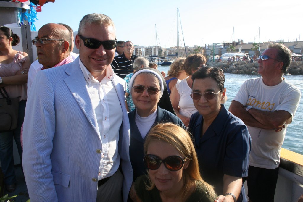Una vez acabada la misa y entre vítores a la Virgen del Carmen, la imagen de la patrona de los pescadores embarcó en el barco pesquero "El Caena" para surcar la Bahía de Mazarrón en dirección a Bolnuevo. Más de una veintena de embarcaciones acompañaron a la "Estrella de los Mares" durante la procesión marítima. Una vez allí se realizó el emotivo homenaje a los pescadores desaparecidos durante este último año. Los devotos lanzaron flores al mar en recuerdo de sus familiares, a la vez que se rezaba por ellos y por las misioneras fallecidas en el accidente de Mozambique.