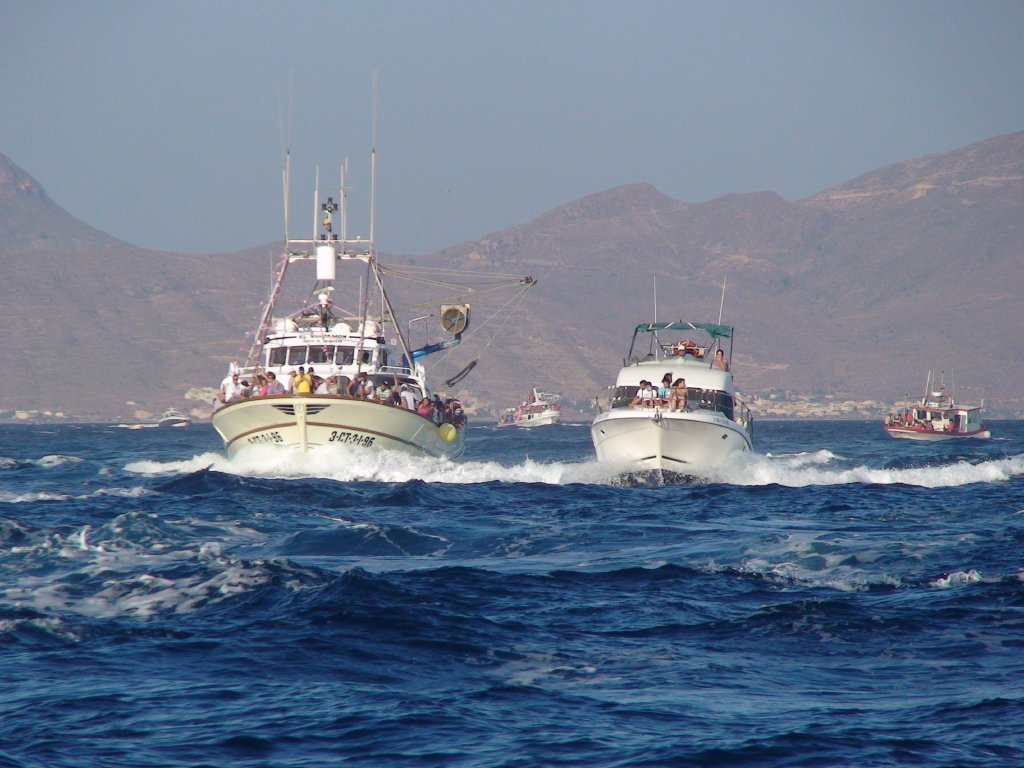 Un año más, y como manda la tradición, la Virgen del Carmen surcó la Bahía de Mazarrón el día de su festividad acompañada de centenares de pescadores, marineros, vecinos y turistas, que durante los diferentes actos programados por la Cofradía de Pescadores de Mazarrón profesaron gran devoción y fe hacia María. Los actos comenzaron a las seis de la tarde en la lonja de pescados del muelle pesquero donde tuvo lugar una misa en honor a la “Estrella de los Mares” que fue oficiada por el sacerdote Francisco Acosta, quien recientemente fue ordenado como tal siendo este su primer oficio multitudinario.