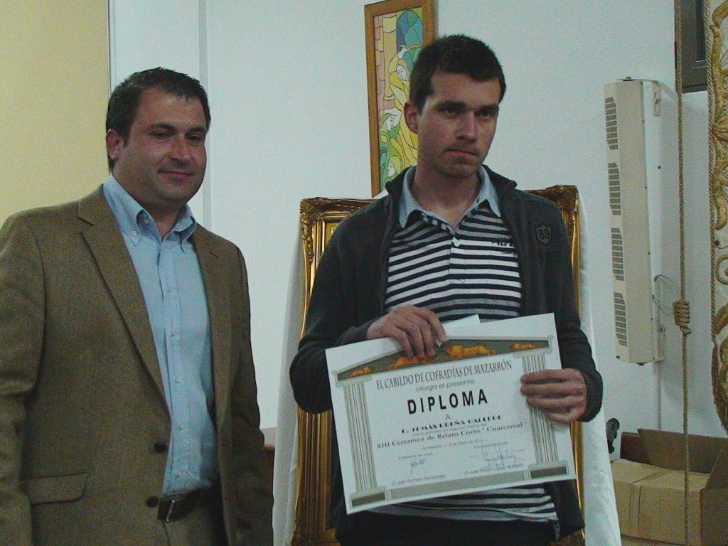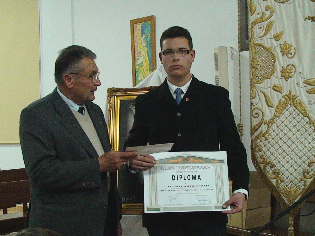 Also was known the winners of the Lenten Short Story Contest. The first prize of this literary contest, with 150 euros, was for Salvador Madrid Vivancos for the story “The love of Christ doesn´t know the oblivion"; while the second prize, with 120 euros, was for Tomás Ureña Gallego for the story “Easter: the cross of Ezequiel”. Finally the third prize, which includes an amount of 100 euros, was for the story “On the Threshold ” of Luis Paredes López. The three prizes are sponsored by the companies “Zausacán”, “Aragón y Méndez” and “La Voz de Mazarrón” respectively.