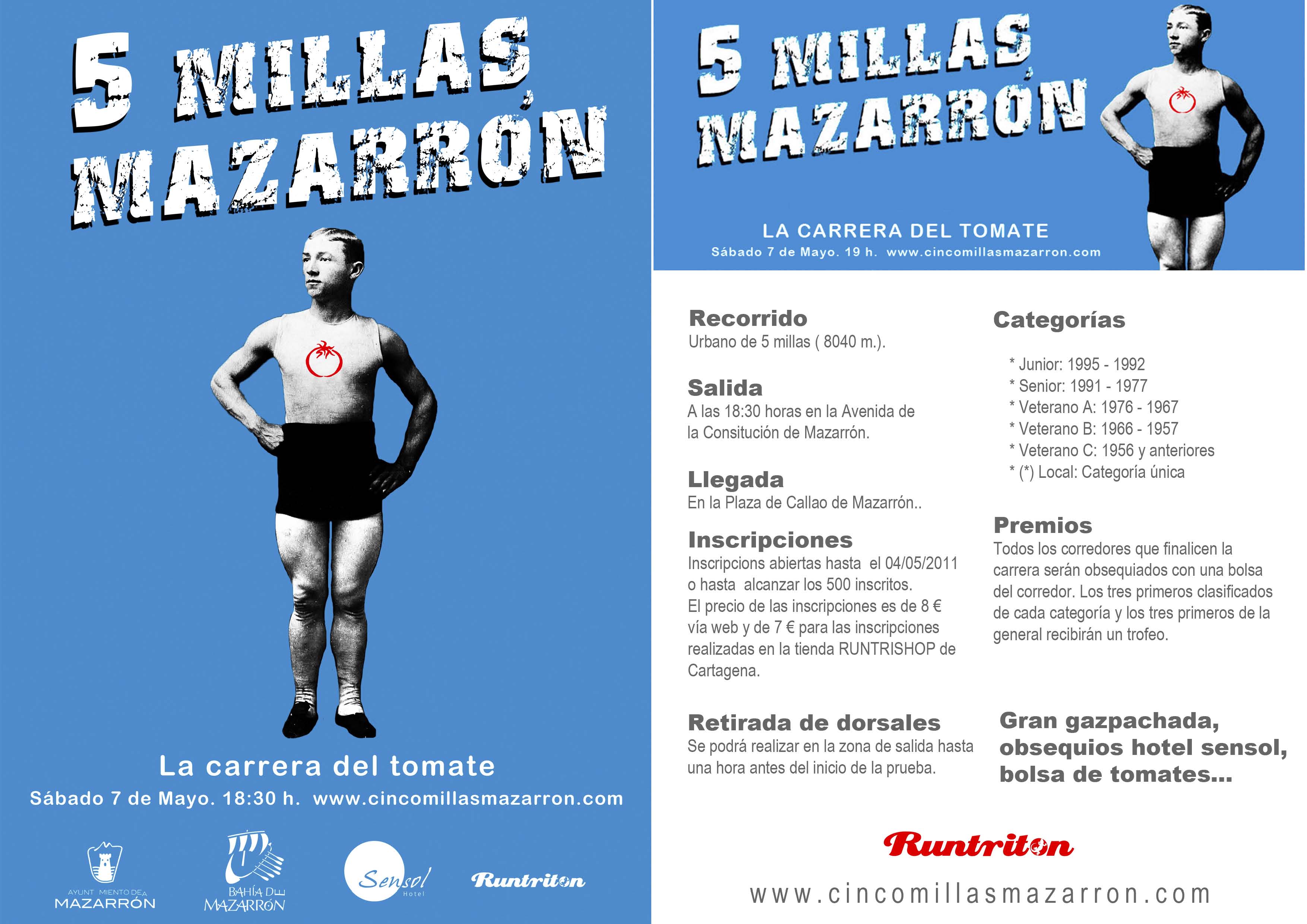 Este sábado, 7 de mayo, a partir de las 18.30 horas el núcleo urbano de Mazarrón se convertirá en una pista deportiva con motivo del desarrollo por segundo año consecutivo de ‘Mazarrón Cinco Millas’, conocida por todos como la ‘Carrera del Tomate’.