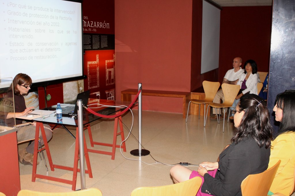 Otra de las actividades llevada a cabo fue la conferencia de “El proceso de restauración de las estructuras del yacimiento Factoría Romana de Salazones del Museo de Mazarrón” que tuvo lugar el sábado 18. La charla fue impartida por la restauradora y conservadora Violante Mª Rodríguez Muñoz, quien fue presentada al público asistente por el Alcalde de Mazarrón, Ginés Campillo, y cuya disertación fue seguida atentamente además por la concejala de Patrimonio Histórico y Museos, María Martínez, y por la de Desarrollo Rural, Magdalena Méndez.