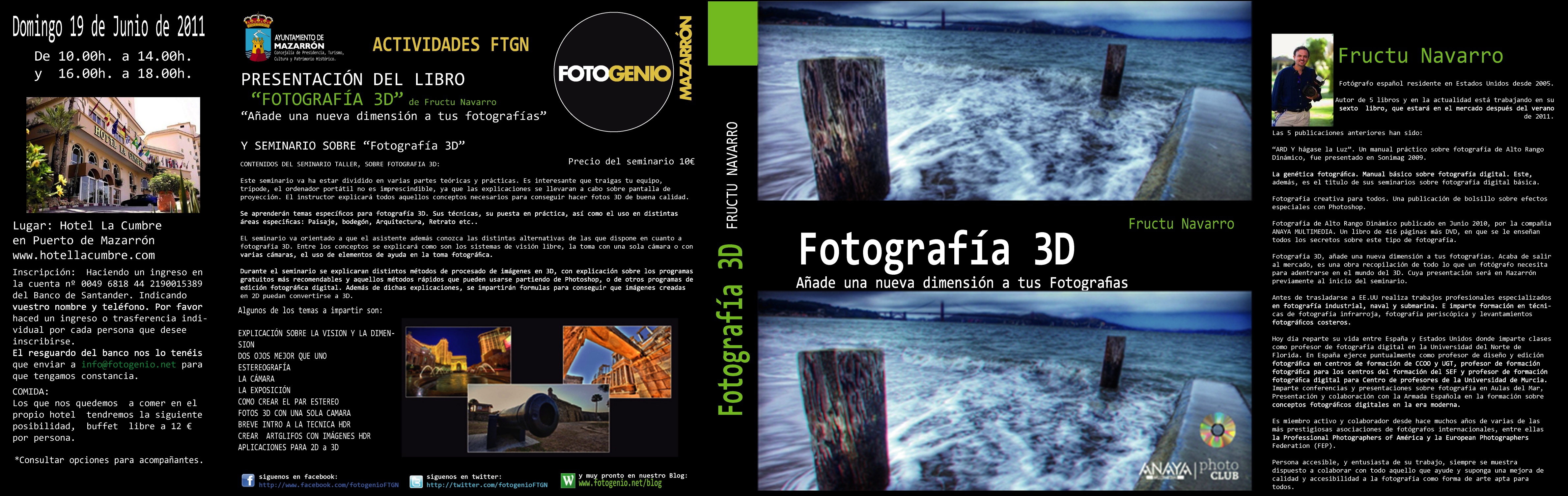 El Alcalde y la Concejala de Cultura, Turismo y Educación, Ginés Campillo y Celeste Soria, presentan con Fructuoso Navarro su sexto libro: “Fotografía 3D, añade una nueva dimensión a tus fotografías”.Área: Turismo, cultura, deportes, festejos | Fecha: Sat Jun 18 17:00:00 CEST 2011