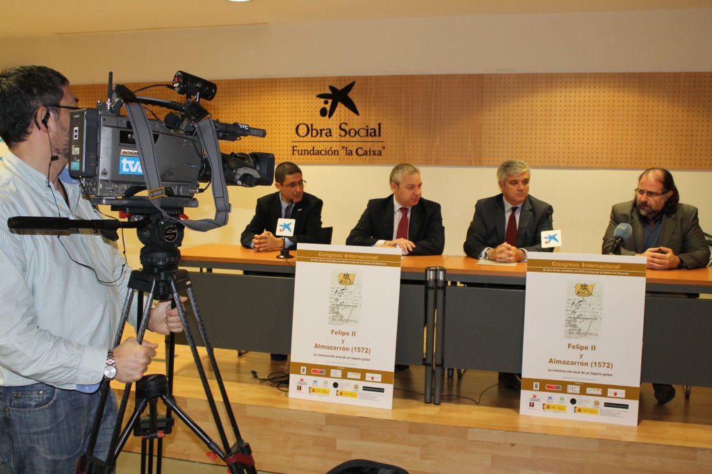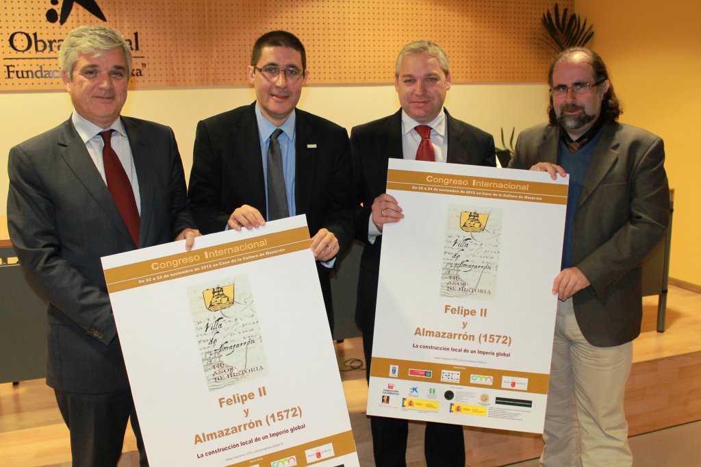 Esta mañana se ha presentado en el “Espacio Caixa Murcia” de la capital murciana la programación del congreso internacional “Felipe II y Almazarrón (1572). La construcción local de un imperio global” que se celebrará en la Casa de la Cultura de Mazarrón del 22 al 24 de noviembre. La presentación ha corrido a cargo del Alcalde de Mazarrón, Ginés Campillo; el director de Banca de Instituciones de Murcia y Alicante de “La Caixa”, Arturo Llopis; el coordinador del Campus Mare Nostrum, Pascual Pérez; y el director científico del congreso y catedrático de la Universidad de Murcia, José Javier Ruiz.