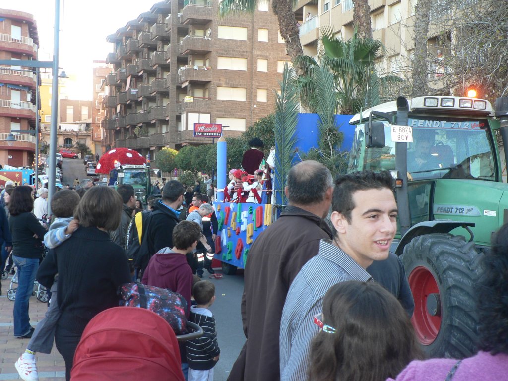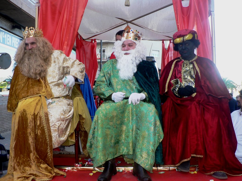 En la primera carroza desfilaban los tres Reyes Magos quienes guardaban un notable parecido con el Alcalde de Mazarrón, Ginés Campillo, y los concejales Isidro Coy y Juan Miguel Muñoz. Tras ellos llegaba triúnfante la carroza de Leiva, ganadora del primer premio del concurso de carrozas de las fiestas, que representaba al Castillo de Los Vélez y seguida de un belén viviente que desfilaba sobre la carroza que fue confeccionada por el barrio de San Isidro para las fiestas municipales.