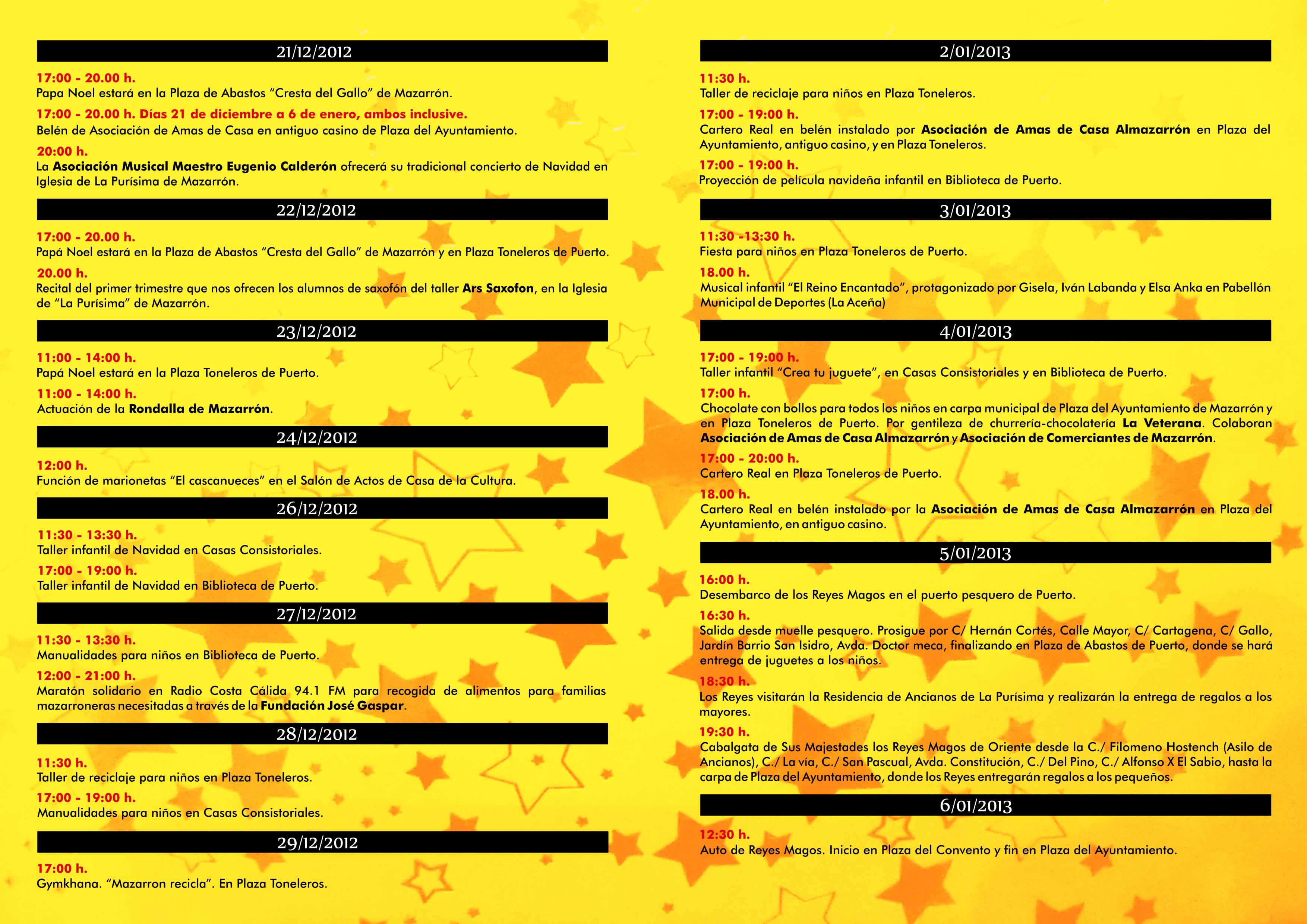PROGRAMACIÓN DE ACTIVIDADES NAVIDEÑAS EN MAZARRÓN Las actividades se desarrollarán entre el 21 de diciembre y el 6 de enero Imágenes